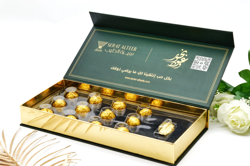 الطقم يأتي مغلفًا باللون الذهبي الفاخر.
